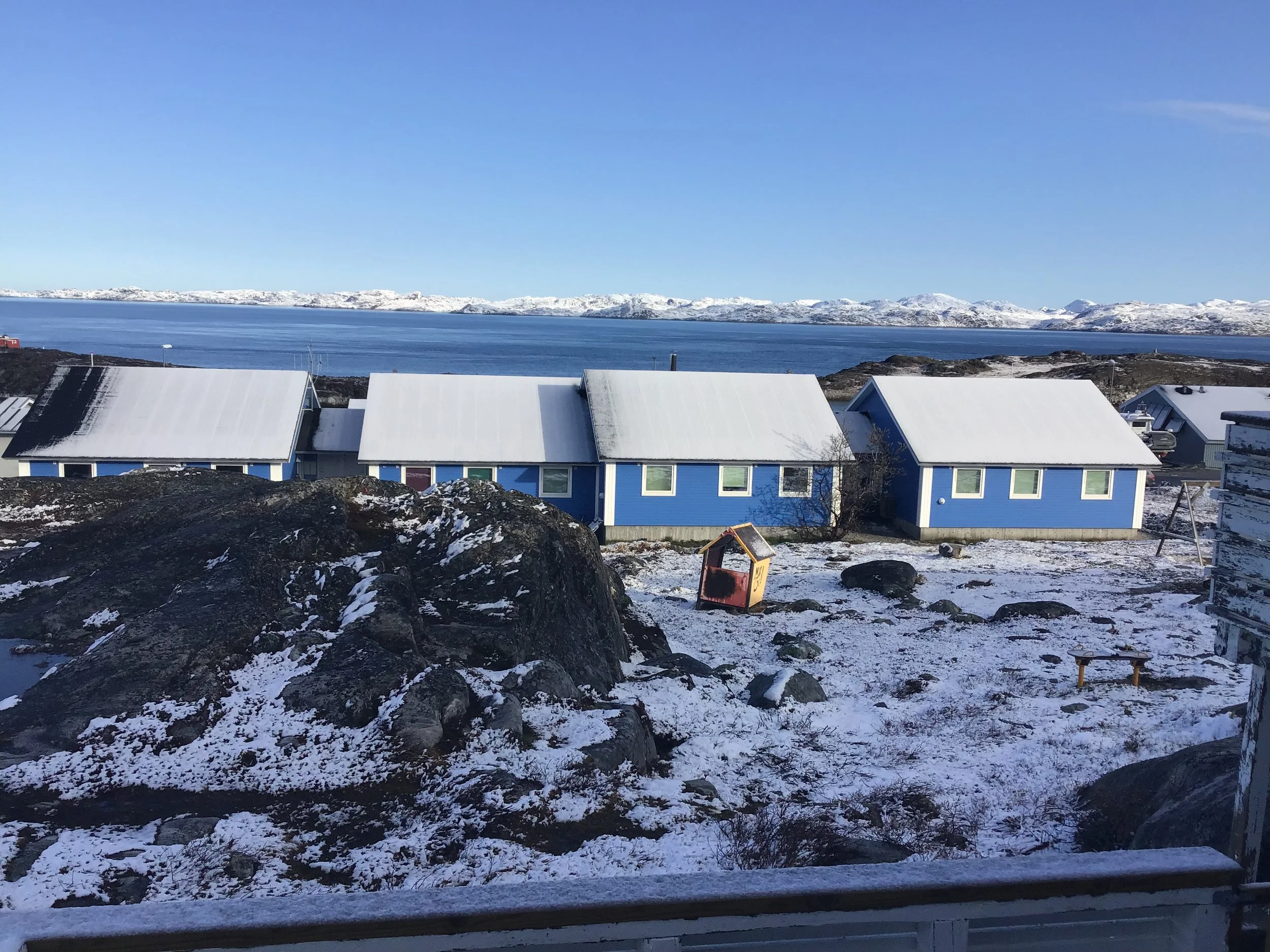 Længst ude ved mundingen af den store bugt, der er ind mod Qussuk, var der en pynt, hvorpå der stod en jagthytte. Vi sejlede langsomt ind mod land, men der var intet sted at kaste anker. Vi måtte opgive og sejle videre, mens vi undrede os over, hvordan de havde fragtet materialer ind til hytten og havde brugt den. Men måske havde de sejlet en jolle ind til land og trukket den helt op.
