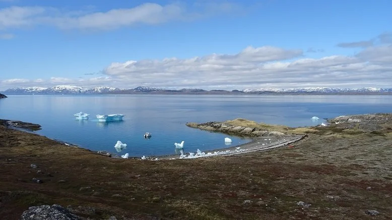 Vi kastede anker i en lillebitte bugt, hvor vi lå i fred for bølgerne og gik i land. Herinde fandt vi en hel del. Både hustomter, teltfundamenter, rævefælder og ikke mindre end 17 grave med resterne af 18 mennesker i. Flere grave var tomme, og i en anden lå der hele 5 mennesker. Den ene hustomt var meget tydelig. Her kunne man se husmuren, husgangen, gulvet og briksen ved endevæggen. Der var ikke meget plads indenfor. Indvendigt mål var ca. 2x3 meter inklusive sovebriksen. Her har en familie boet og arbejdet. Der har ikke været meget plads at bevæge sig i endsige privatliv. Et sted skræmte vi en gråand op fra sin rede. Vi skyndte os at se efter på en lille pynt, som reden lå ved roden af. Så forlod vi det område, så anden kunne komme tilbage til sine æg.